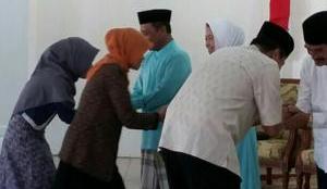Secara bergiliran mereka menyalami Bupati dan Wakil Bupati untuk bermaaf-maafan.