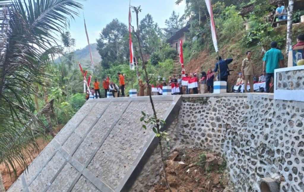 “Dulu setelah bencana, jalan ini tidak bisa dilewati kendaraan. Sekarang sudah bisa, dan talud pengaman jalan selesai seratus persen,”ujarnya.