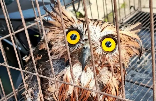 Burung Hantu ‘Koko Beluk’ Masuk Kolam Lele, Dievakuasi Animal Rescue Pacitan
