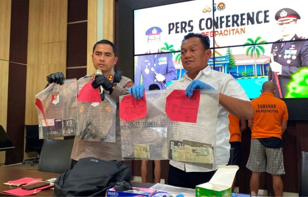 Dua orang tersangka berinisial FS dan MA, yang merupakan warga Kecamatan Pringkuku, akhirnya diringkus aparat setelah teridentifikasi melancarkan aksinya di delapan lokasi berbeda sambil membawa senjata api rakitan sebagai alat ancaman.