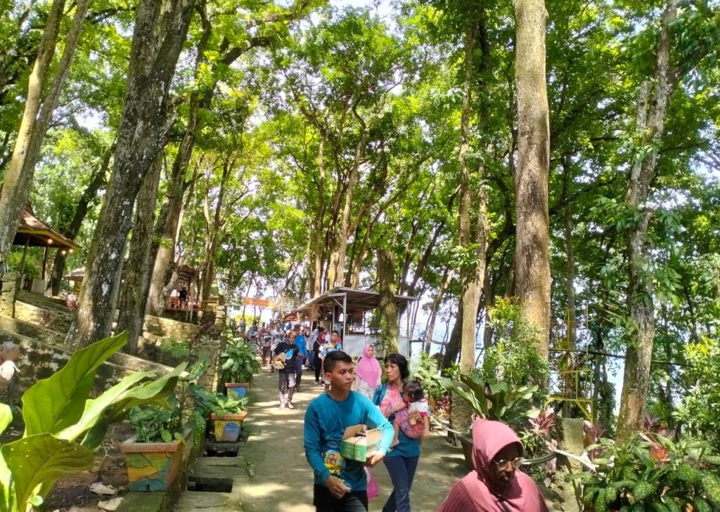 Para pengunjung yang didominasi oleh rombongan keluarga ini tampak menikmati berbagai spot foto instagramable dan pemandangan alam dari ketinggian yang menjadi daya tarik utama destinasi tersebut.