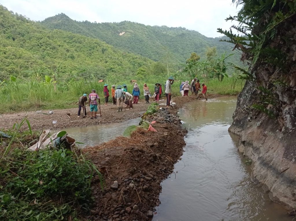 Inisiatif pembangunan irigasi darurat ini memanfaatkan aliran air alami yang bersumber dari Gunung Gajah.