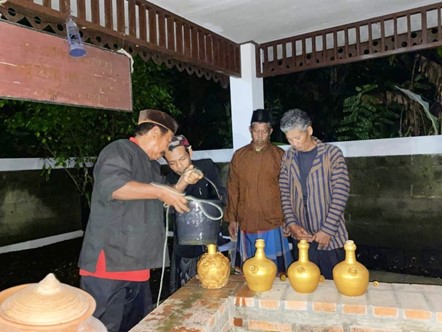 Sebelum air diambil, rombongan terlebih dahulu menghadap juru kunci Sumur Njero sebagai bentuk penghormatan terhadap adat dan tradisi leluhur.
