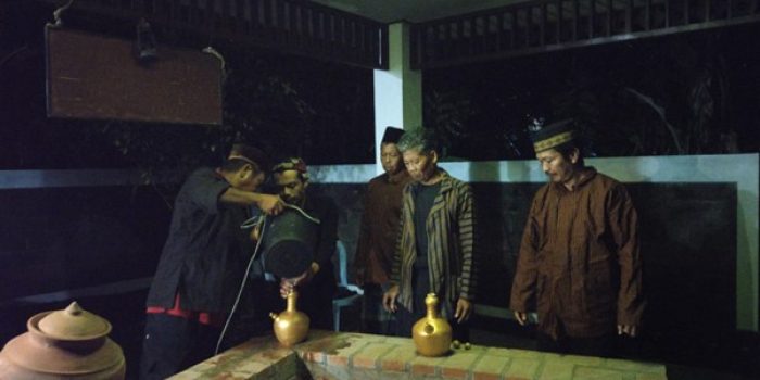 Setibanya di lokasi, mereka menghadap juru kunci sumur sebelum pengambilan air dilakukan.