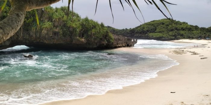 Pacitanku.com, PRINGKUKU-Jalanan berkelok di wilayah selatan Kabupaten Pacitan membawa perjalanan menuju sebuah pantai yang masih menjaga wajah alaminya.
