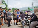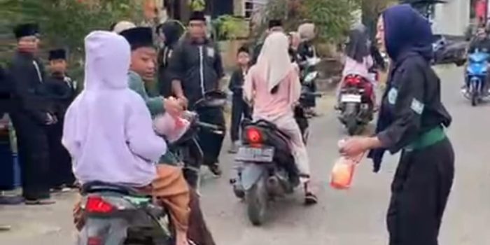 Puluhan pendekar dari berbagai perguruan turun langsung ke jalan di salah satu persimpangan utama Kecamatan Bandar untuk membagikan paket takjil kepada pengguna jalan yang melintas.