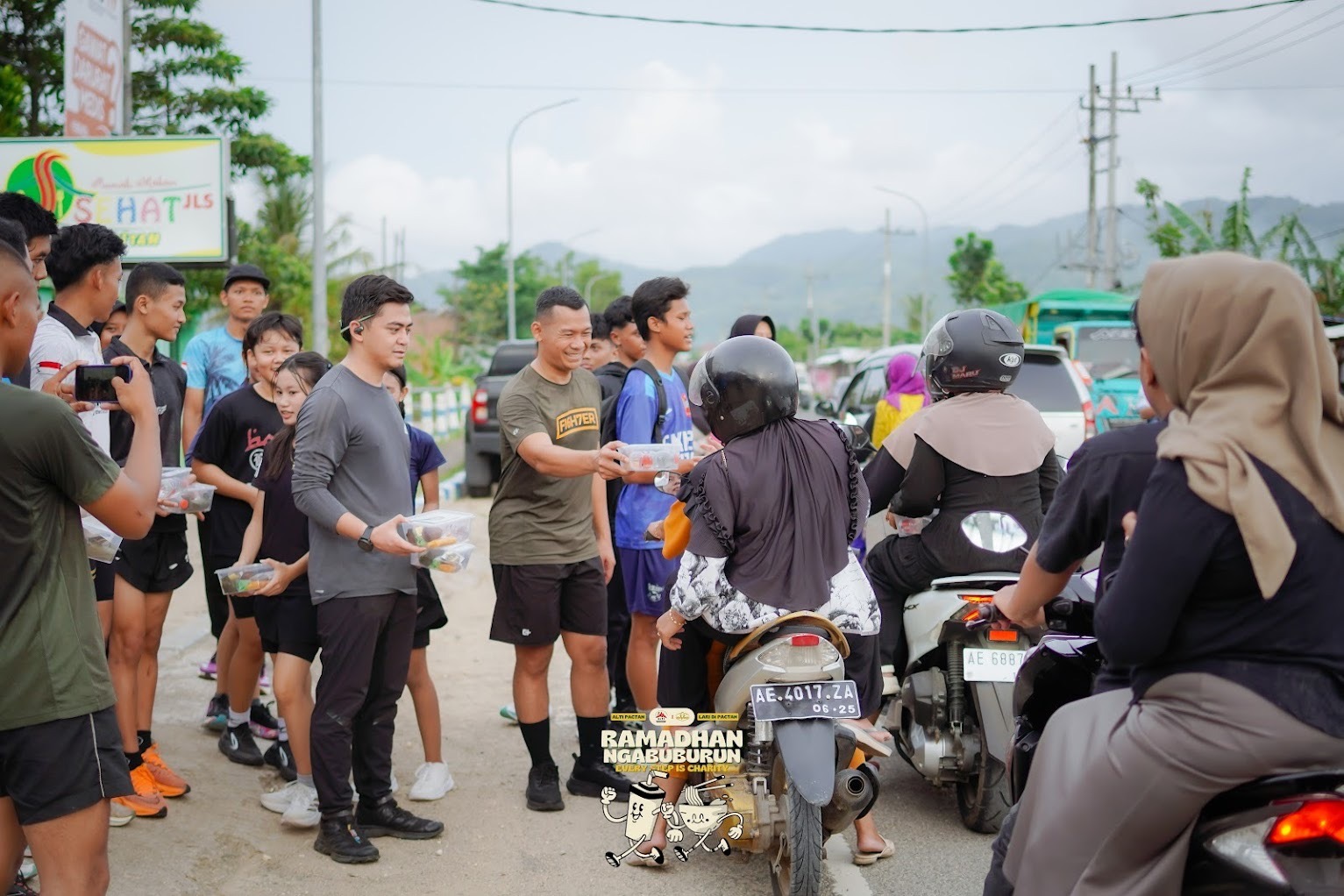 Setelah menyelesaikan rute lari, para peserta kemudian membagikan takjil gratis kepada masyarakat dan pengguna jalan yang melintas di sekitar Jalur Lintas Selatan (JLS).