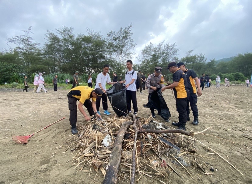 Tidak hanya melakukan penanaman cemara udang dan pandan laut, kegiatan tersebut juga disertai dengan aksi bersih pantai guna membersihkan sampah yang mencemari area pesisir.